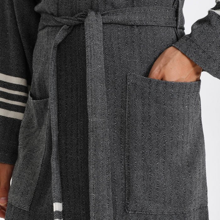 Turkish Peshtemal Bathrobe – Charcoal Black & White Stripe (Unisex)