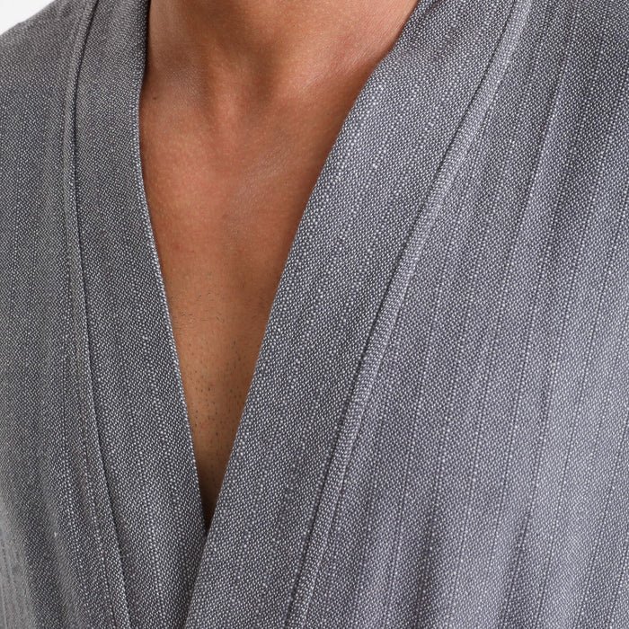 Turkish Peshtemal Bathrobe – Dark Grey & White Stripe (Unisex)