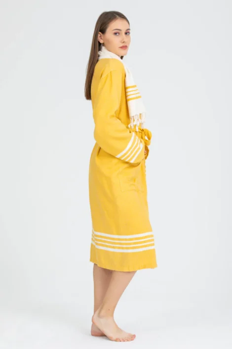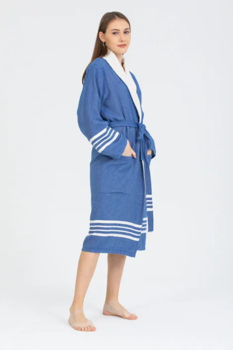 Hand-Loomed Artisanal Quality – Each bathrobe is hand-loomed in Turkey using traditional weaving methods preserved through generations. All fringes (if present) are carefully hand-knotted by village craftswomen, ensuring authentic quality in every detail.